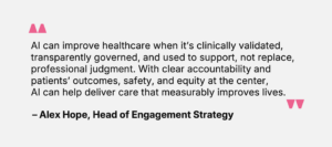 For patients, AI can improve understanding and engagement. For clinicians and health systems, it can enhance efficiency and insight. But AI has limitations. It is people – patients asking the right questions, clinicians applying experience and expertise, and organizations providing oversight – who ensure those tools are used safely and effectively.